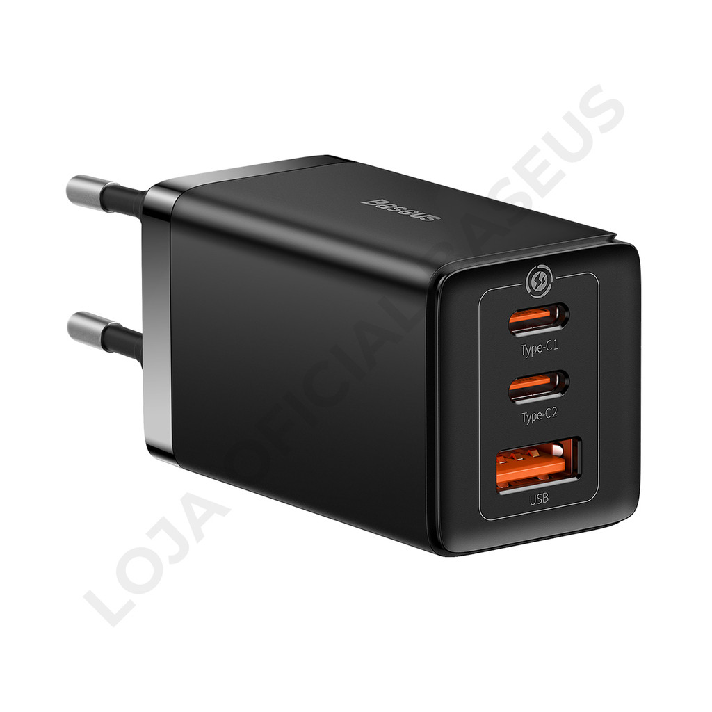 Carregador Super Rápido Turbo Baseus Gan5 Pro 65W 3 Portas Saídas 2x Tipo-C e 1x Usb Para Celular Notebook