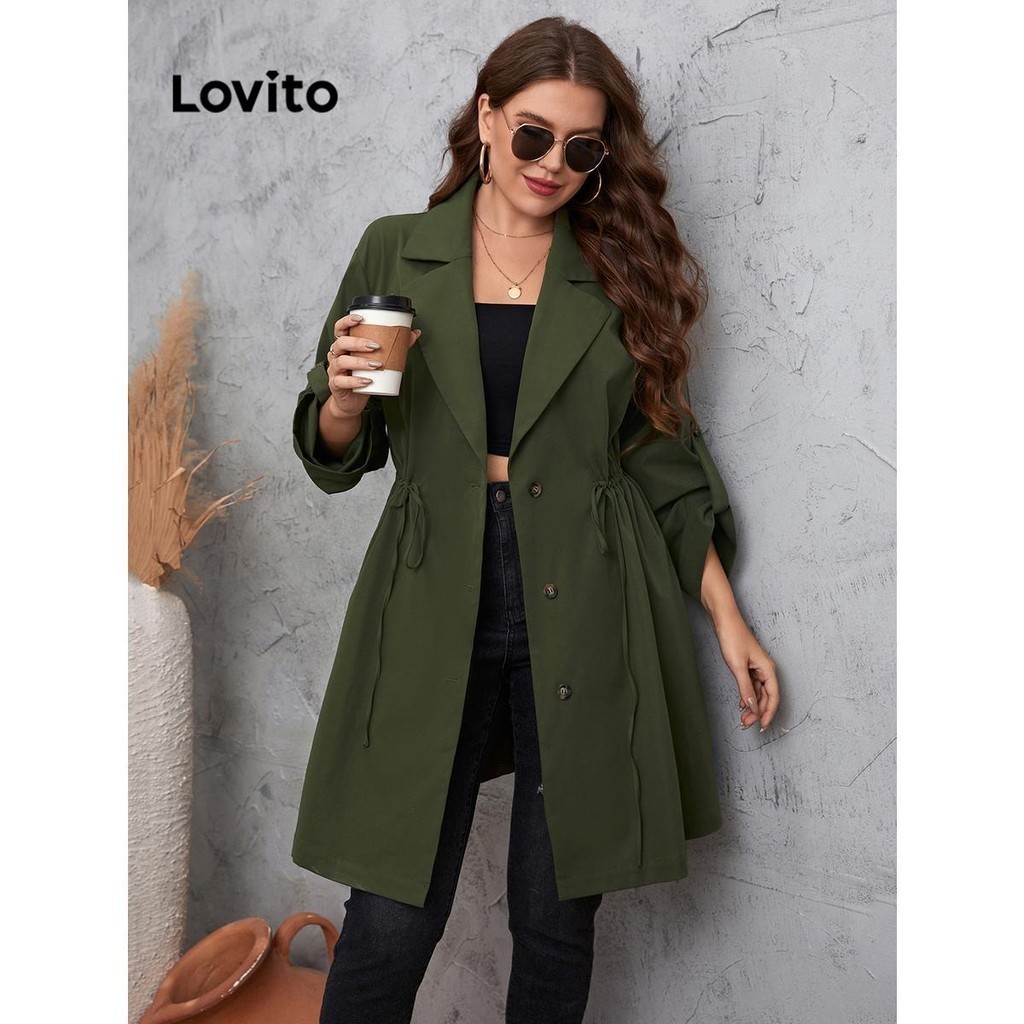 Lovito Jaqueta plus size curva casual simples com cordão para mulheres LNL57310