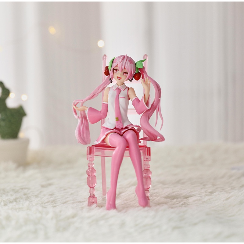 Bonito Hatsune miku sakura Posição Sentado PVC Action Figure Ornamento Da Cadeira Para Crianças De Aniversário