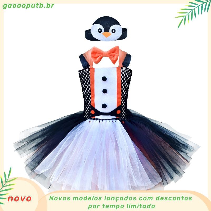 Fantasia De Pinguim Para Crianças De 1 A 12 Anos , Vestido De Tule Sem Mangas Com Gravata Borboleta , Faixa De Cabeça ,