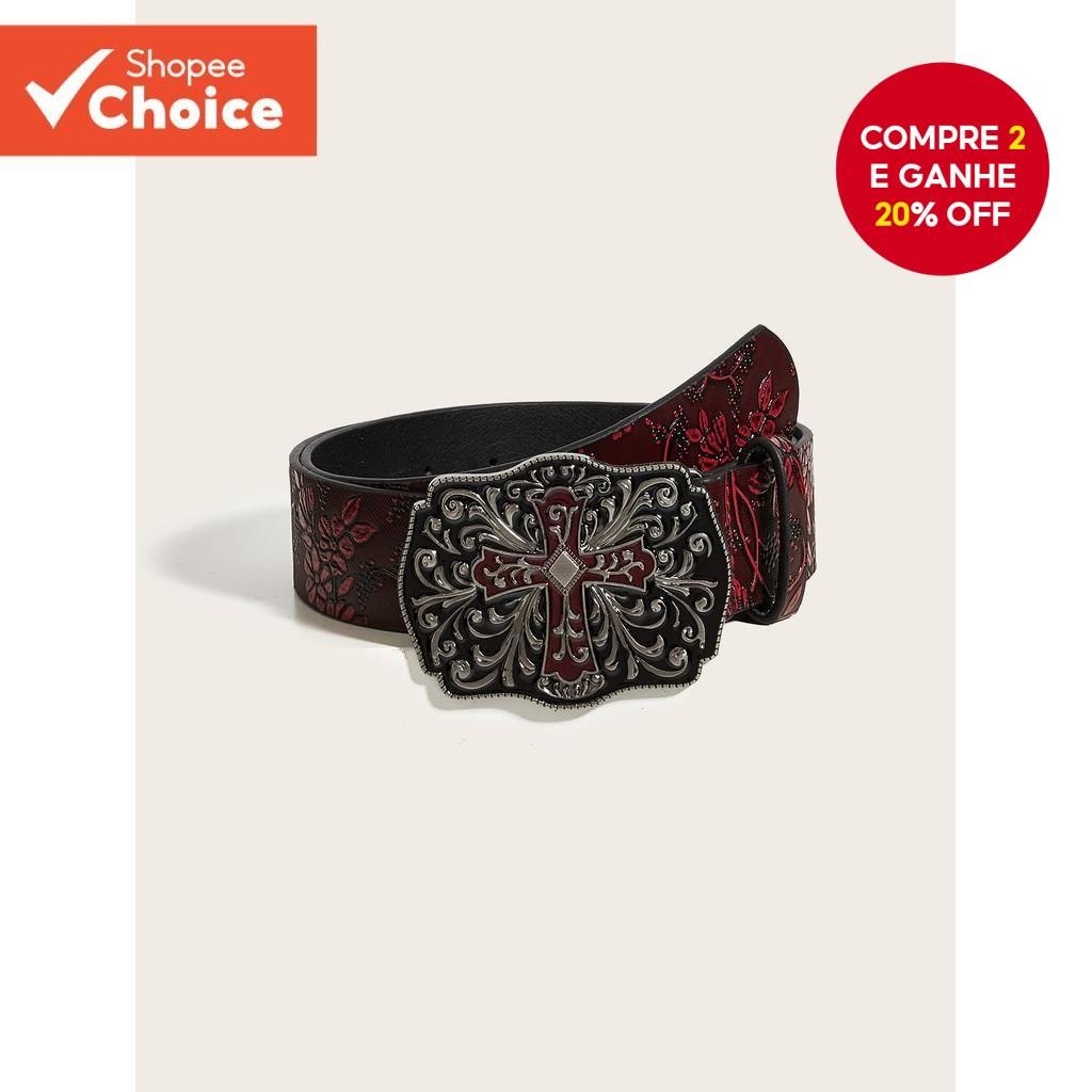 [bagreny] Retro Cruz Fivela Em Relevo Cinto Masculino Y2k Punk Cintura Boate Calças Decorativo Para Jeans Acessórios BR