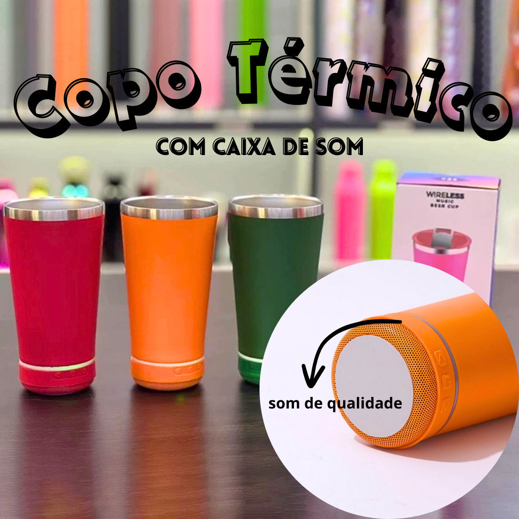 Copo Térmico Com Caixa de Som 2 em 1 - Mais Diversão No seu Dia a Dia - Aço Inoxidável - Oficial