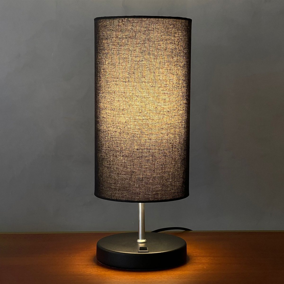 Abajur Luminária de Mesa Quarto ou Sala Redondo Preto com Cúpula Tecido Algodão Preto