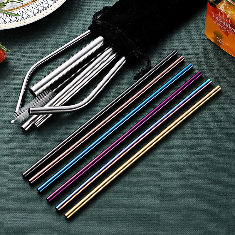 Canudos De Metal Coloridos Reutilizáveis 18/10 Aço Inoxidável Escova De Limpeza Saco Da Família Bar Bebida Acessório