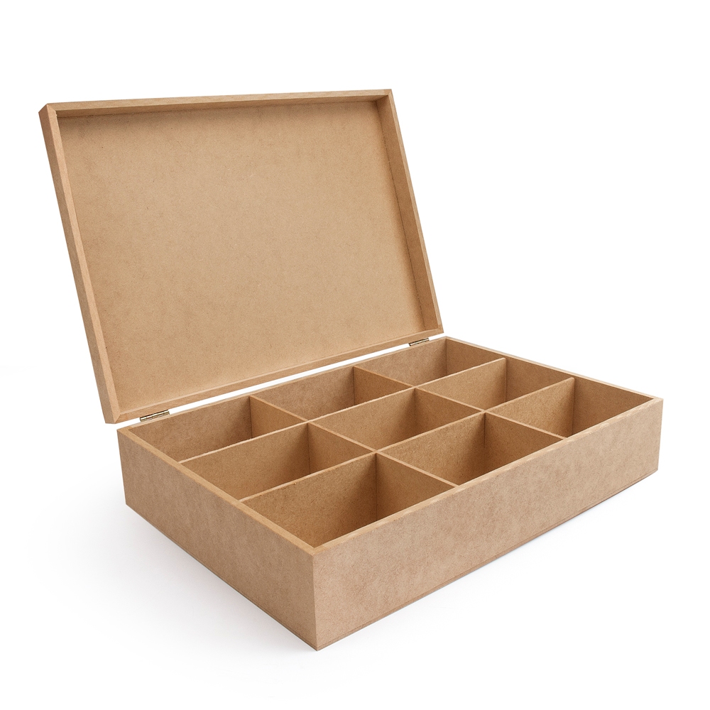 Caixa Com Dobradiça e Divisória Retangular 30x20x10 em Mdf Cru