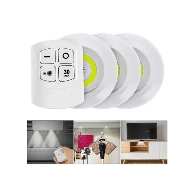 Kit C/3 Lampada Luminaria Led Spot Sem Fio Controle Remoto Luz LED