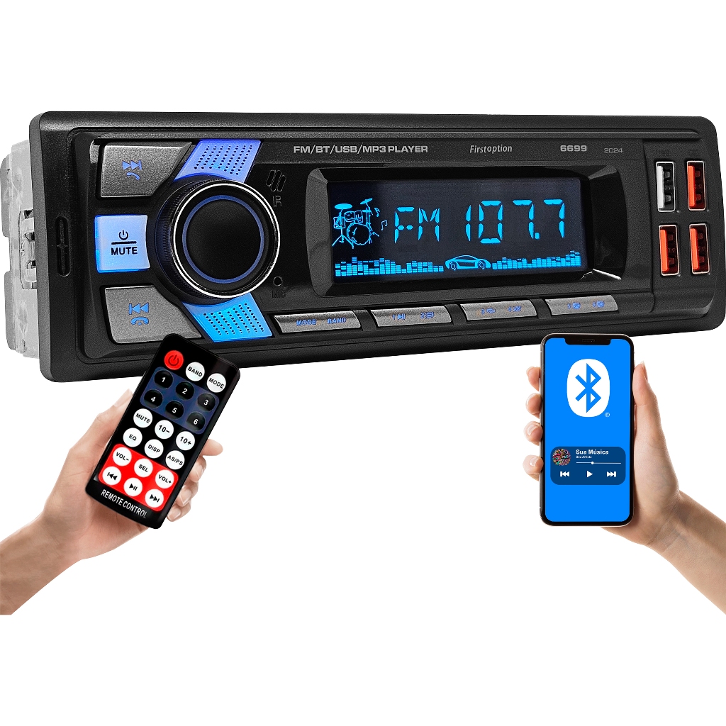 Rádio MP3 Player Som Automotivo Bluetooth First Option 6699 2024 Universal 1 Din 4 Entradas USB 4x50