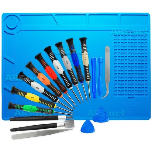 Kit Manta Antiestática 45x30cm com Chaves de Precisão 16 peças Estação de Trabalho Resistente a Calor Jogo de Tapete de Silicone para Bancada de Manutenção de Celular Iphone Notebook Desktop Tablet Eletrônicos