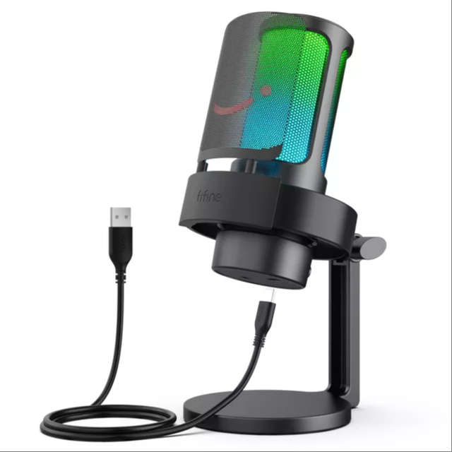 FIFINE Microfone De PC Para Jogos, Ampligame Condensador USB Desktop RGB Controle Para Gravação De Streaming De Podcasts Youtube No Mac/Computador/PS4/PS5, Com Botão Mudo, Ganho De Microfone