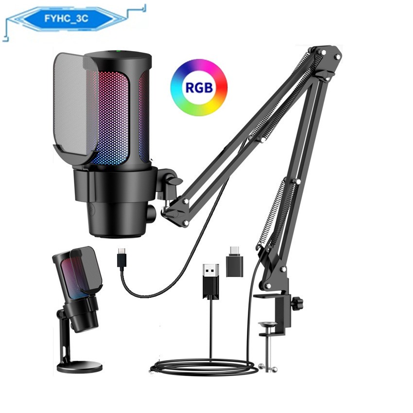 Microfone Rgb Gamer Condensador Live Usb Para Computador PC Jogos e Gravação Youtube Alta Qualidade