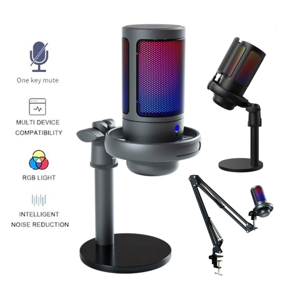 Microfone USB Para Jogos De PC Com Fio Streaming Podcasts , De Mesa Condensador De Computador RGB Vídeo YouTube