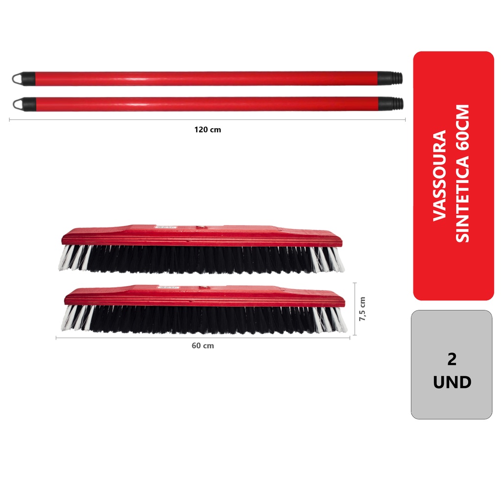 Kit 2 Vassoura De Pelo 60 cm Com Cabo Plastificado Reforçada