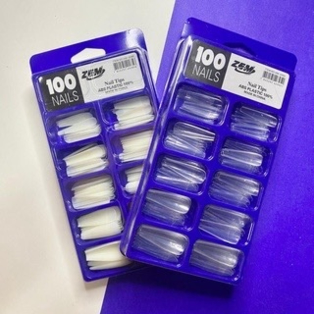 Kit 100 Unhas Tips postiça Bailarina Natural (Branca/transparente)