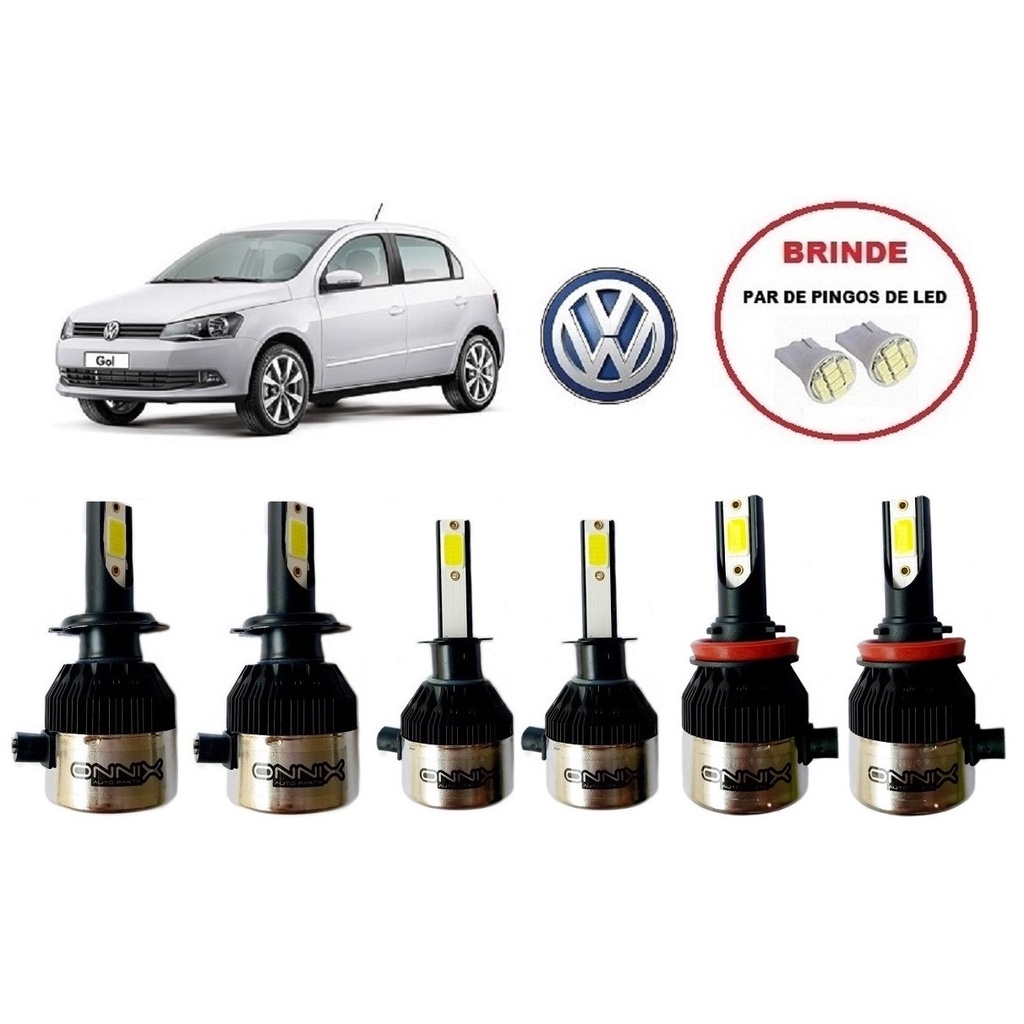 Kit Lampadas Super Led Vw Gol G6 Farol Alto H1 E Baixo H7 + Brinde