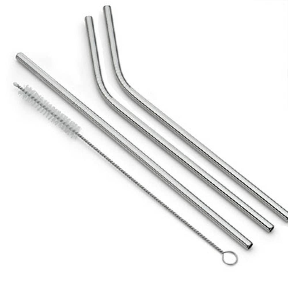 Kit Com 03 Canudos + Limpador De Aço Inoxidável Reutilizáveis Metal Reto Dobrado Conjunto De Escova De Limpeza De Palha Bebida Café Leite Chá