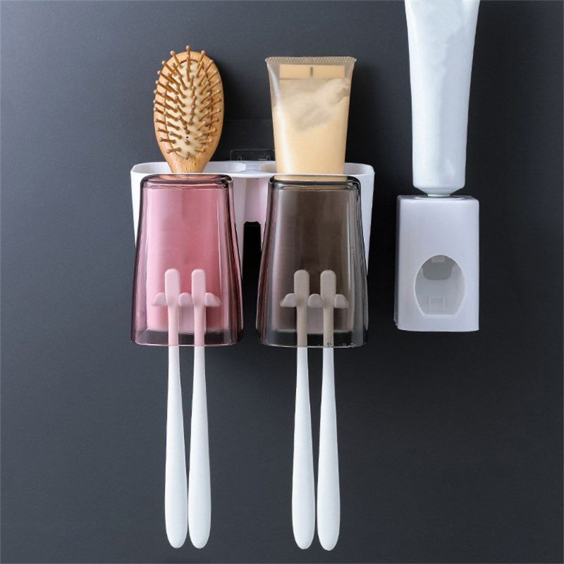 Suporte Para Escova De Dente Pasta Espremedor De Parede Copo De Banheiro Rack De Armazenamento Sem Soco Conjunto Família Decoração