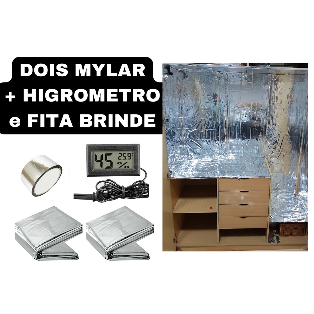 Kit Grow Cultivo C/2 Mylar Isolante C/ Higrometro C/ Fita 2,10x1,40m