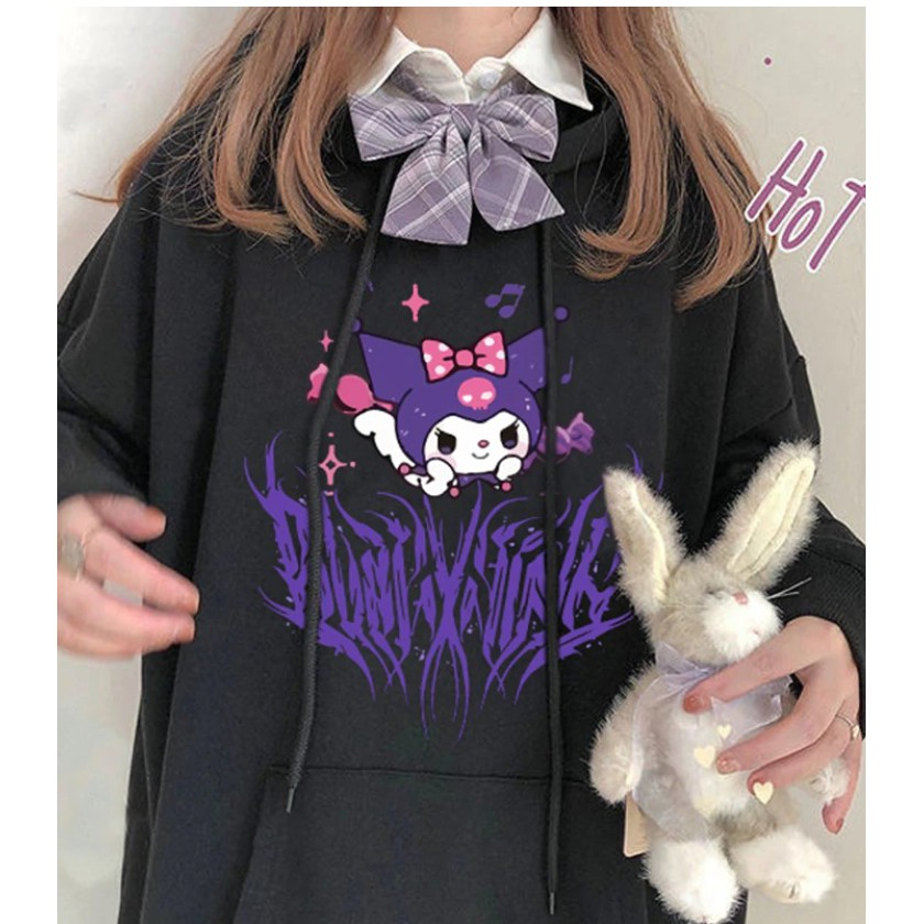 Moletom Canguru Com Capuz Feminina Anime Kuromi Fofo Hello Kitty Blusa De Frio Algodão