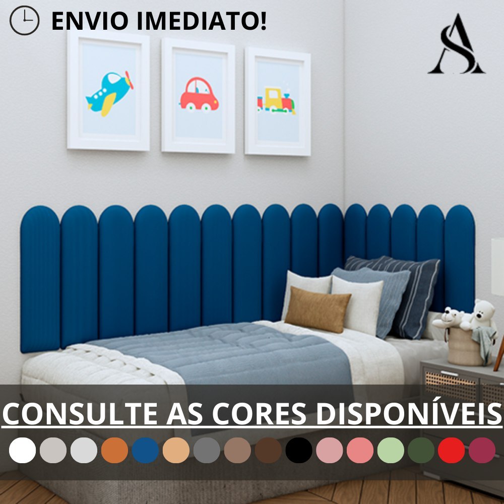 Kit 15 Cabeceira Estofada Completa Adesiva em Modulos 60x20 para Cama de Solteiro em L