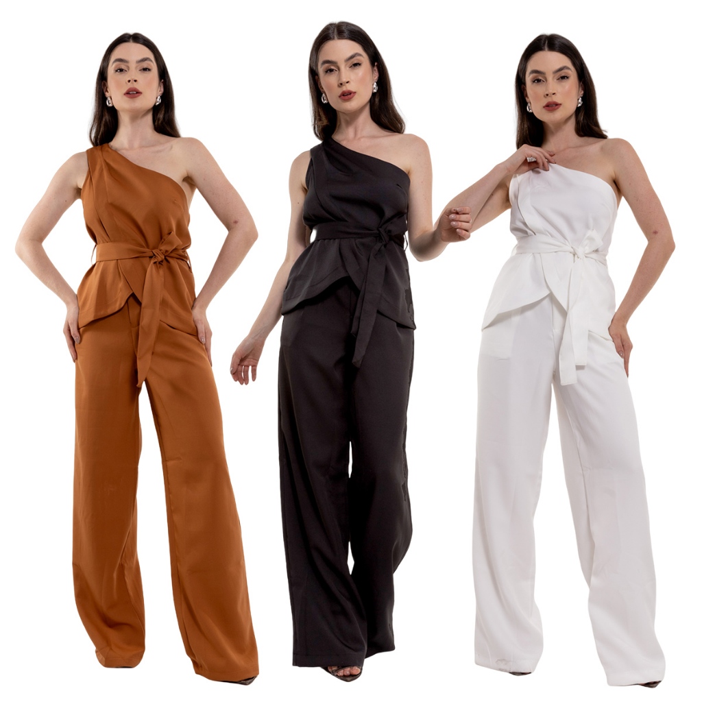 Elegante Conjunto Feminino Liso Assimetrico De Calca Pantalona Com Cinto E Babados HC-CON-057