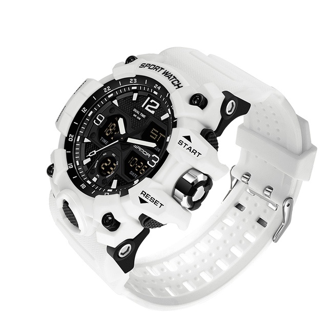 SANDA Homens Militar Relógios Branco Relógio Do Esporte Estilo LED Digital 50 M À Prova D'água Masculino Relogio