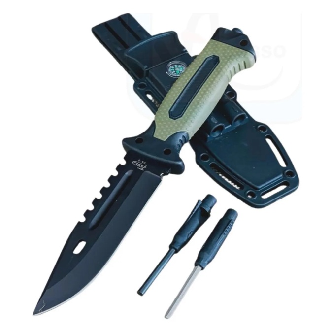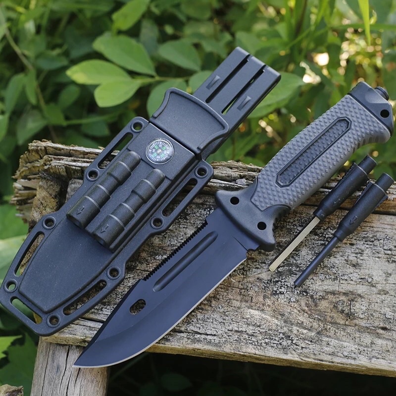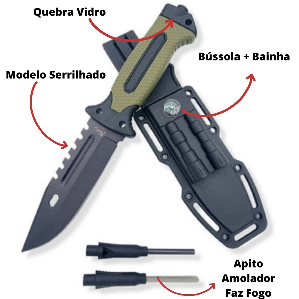 Faca Tática 27cm Especial Com Bússola Amolador Apito E Pederneira Camping Trilha Pesca