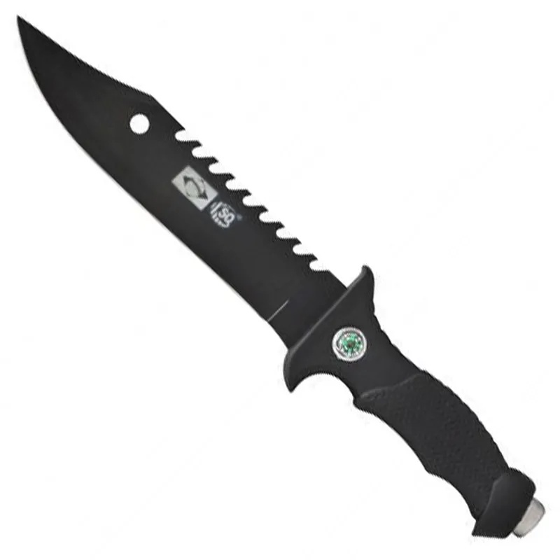 Faca Tática Militar Esportiva Caça Mergulho Pesca Com Bainha Bússola Pederneira Apito Sobrevivência