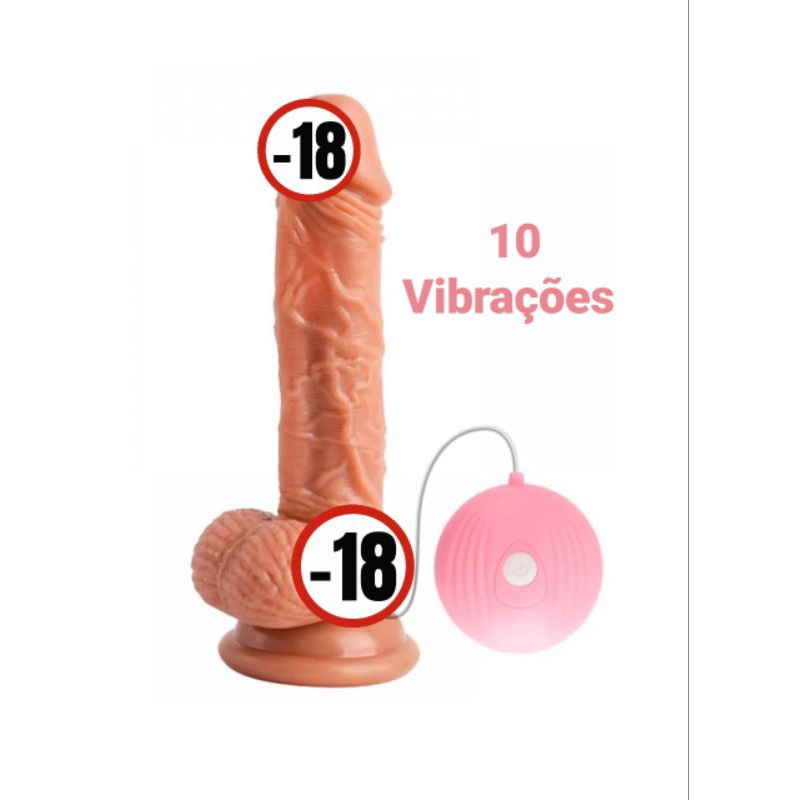 Vibrador Pênis de Borracha 10 Vibrações Prótese Realística 16,5 cm Veias Saltadas Glande Saliente Com Ventosa