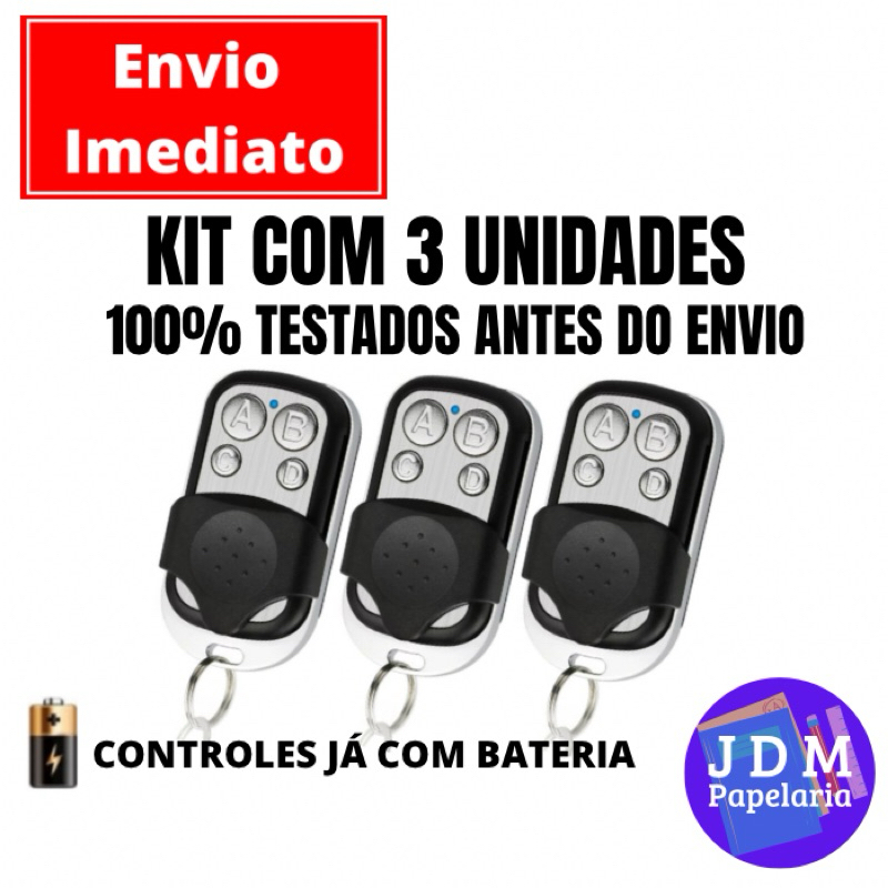 kit 3 controle remoto portão eletrônico universal alarme copiador duplicador c/ bateria 433mhz