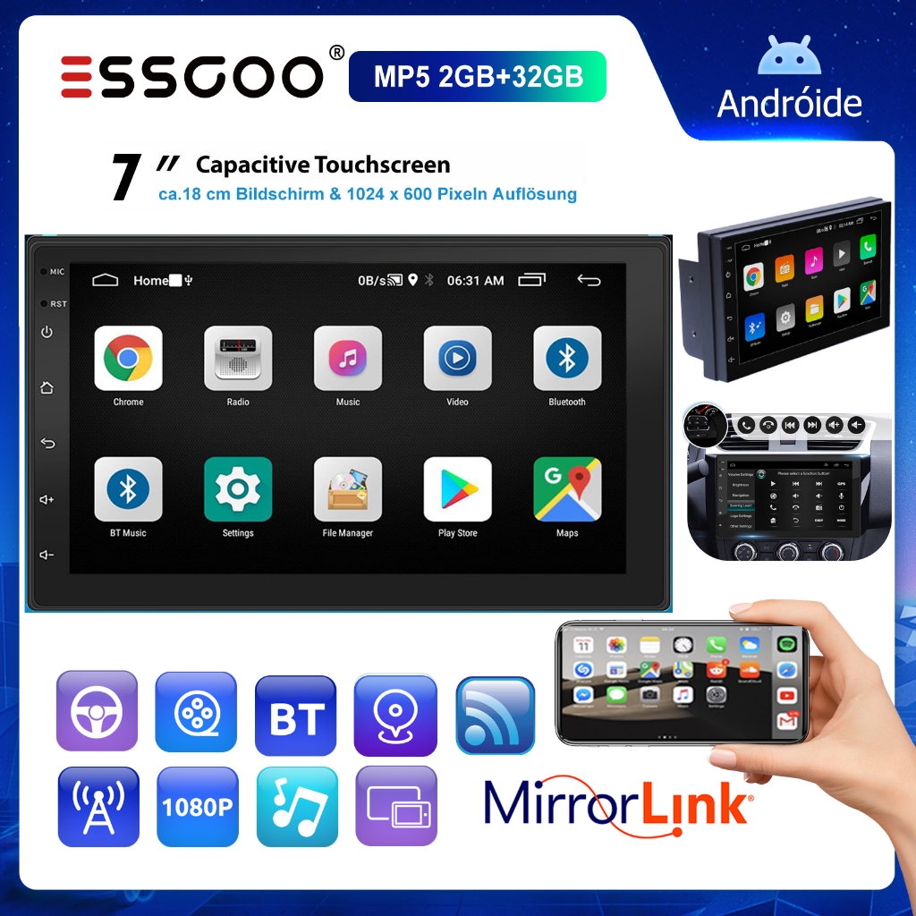 (Envio de São Paulo)ESSGOO Central Multimidia Android 13 2GB 4GB 7 Pol 2 Din Espelhamento USB Bluetooth GPS Integrado