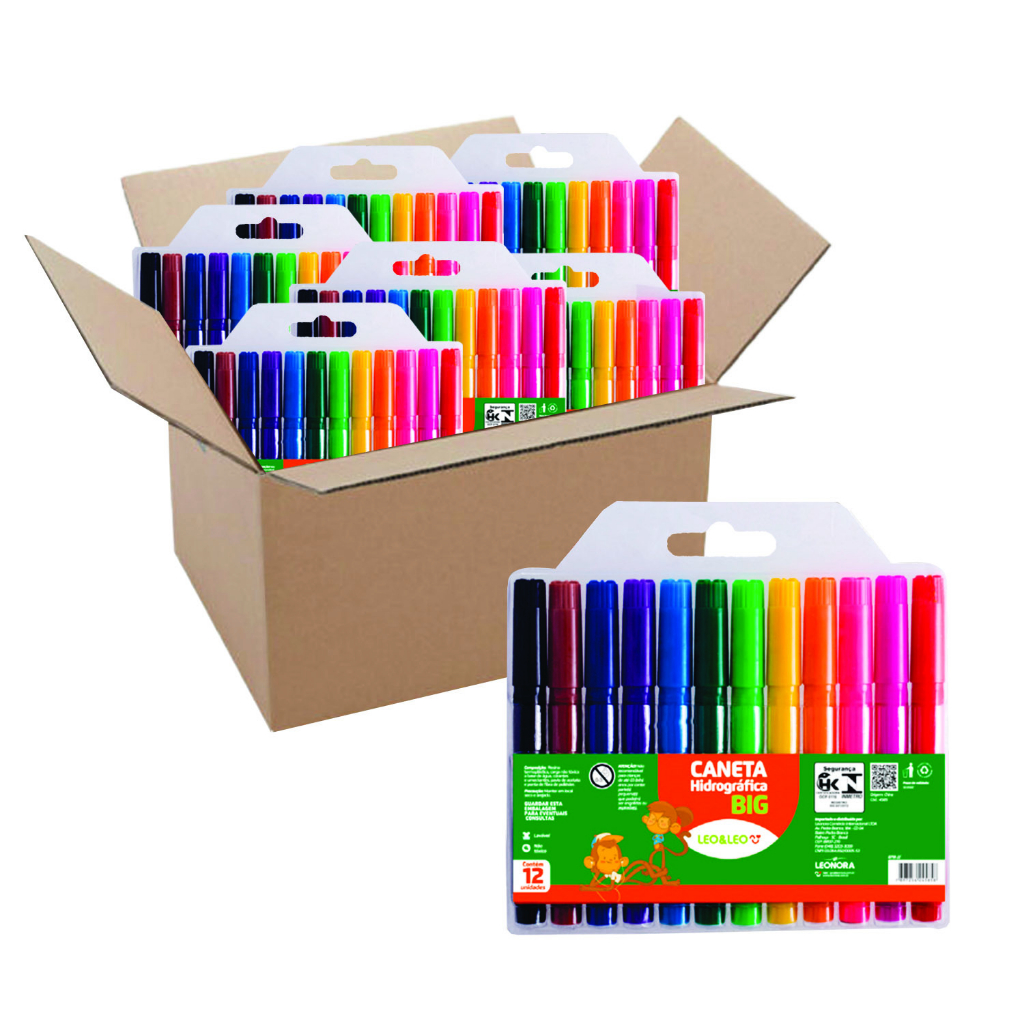 Kit Com 12 Pacotes De Estojos com 12 Canetinha Hidrográfica Leo Leo 6 ou 12 unidades