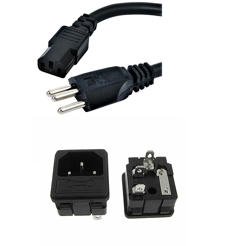Cabo De Força Pc 3X0,75mm 10A 1,50 metros + Tomada Painel Força Plugue Macho Tripolar C14 10 A Fonte