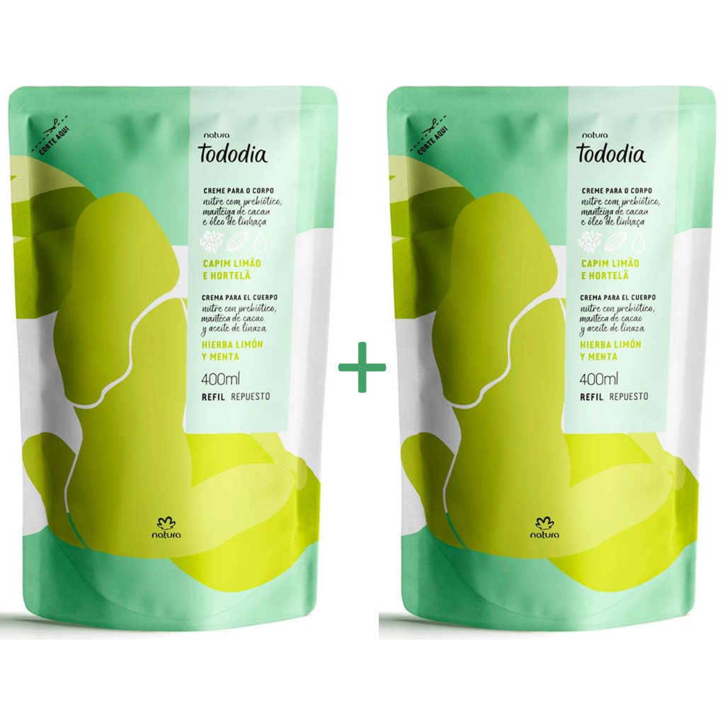 Kit com 2 refis Creme Desodorante Nutritivo Para o Corpo Tododia Capim Limão e Hortelã