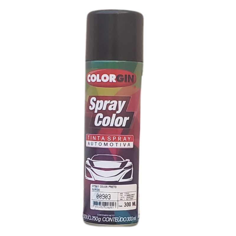 Tinta Spray Automotiva Colorgin Preto Brilhante Rápido 300ml