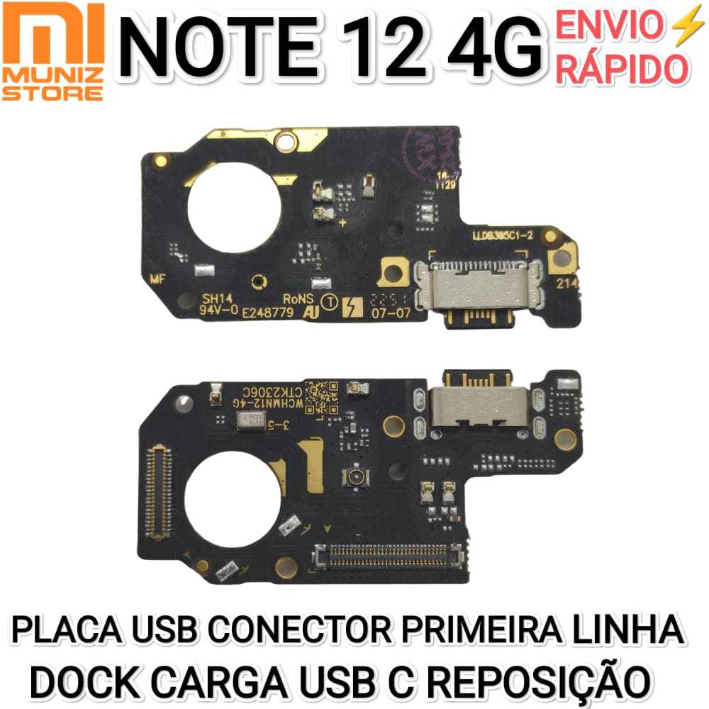 Conector Xiaomi Redmi Note 12 4G Placa De Carga USB Tipo C Primeira Linha/Original Dock Carga Carregamento Turbo