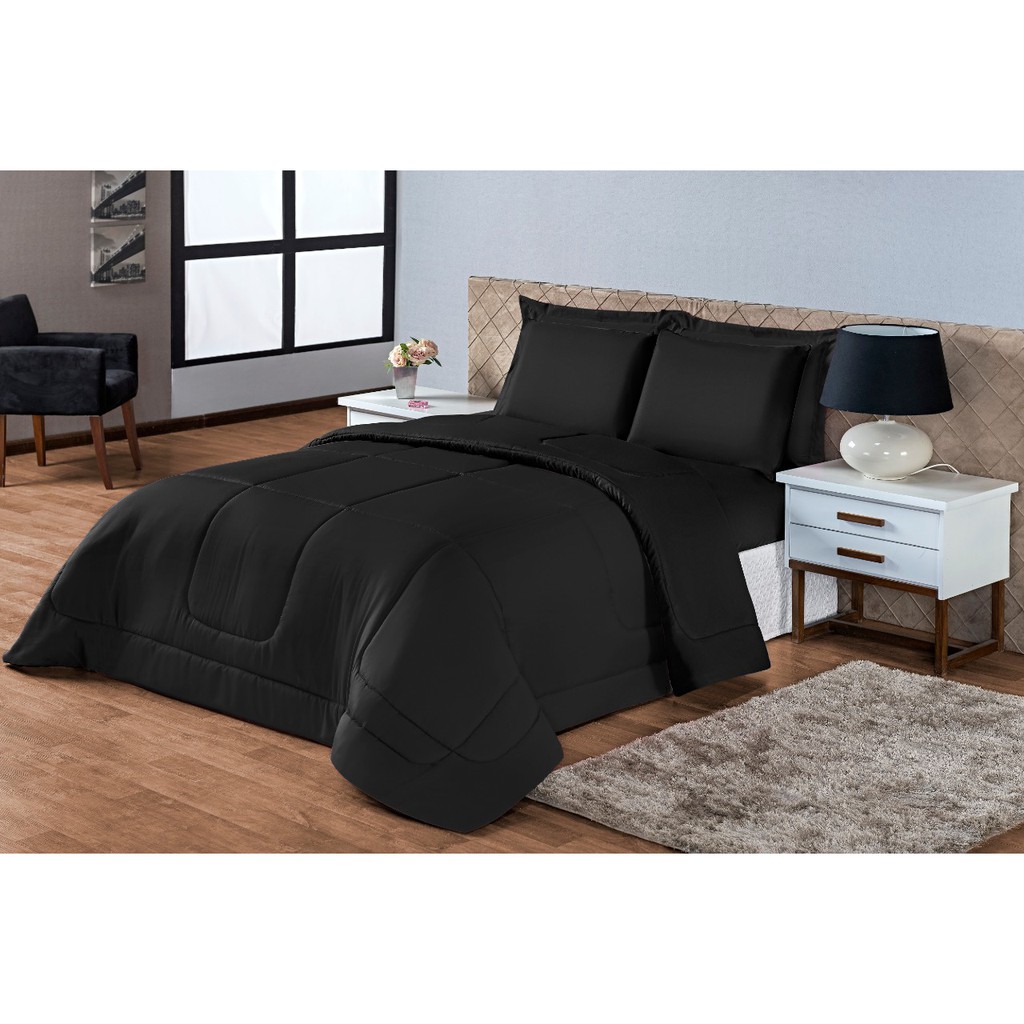 Kit Edredon Ternura Casal Queen 6 Peça Preto Dupla Face