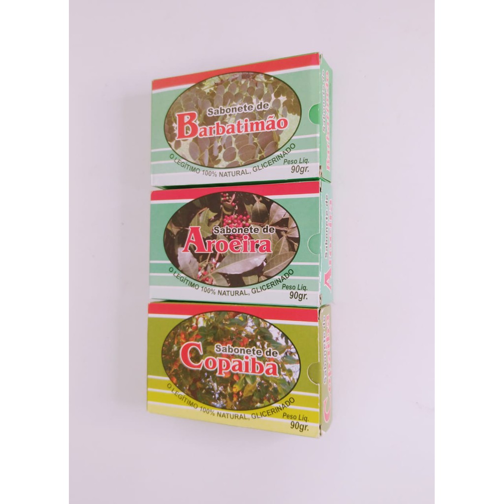 Kit C/ 3 sabonetes em barras de Barbatimão, Aroeira e Copaíba