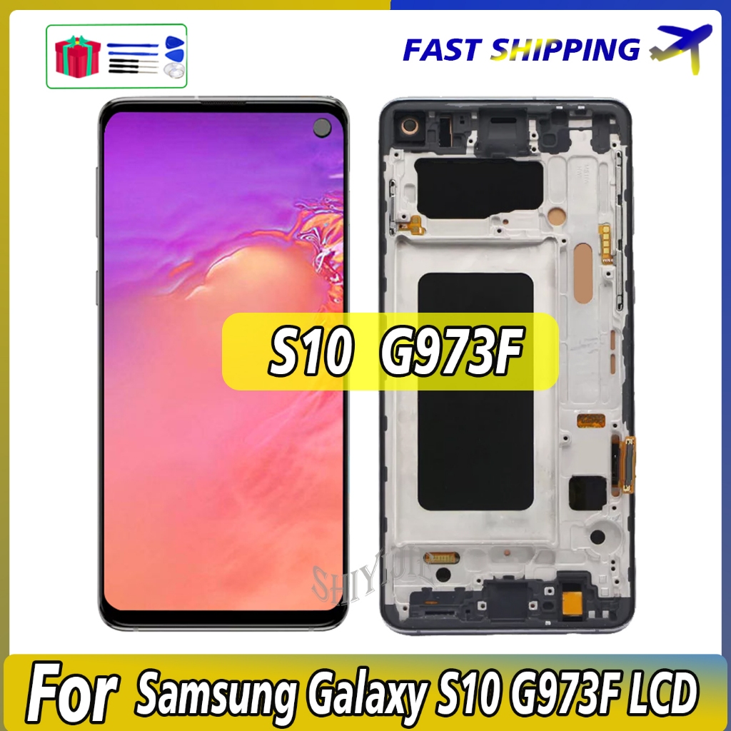 100 % LCD TFT S10 Plus Testado Com Moldura Para Samsung Galaxy S10 G973 G973F/DS Digitalizador De Tela Sensível Ao Toque S10 + G975