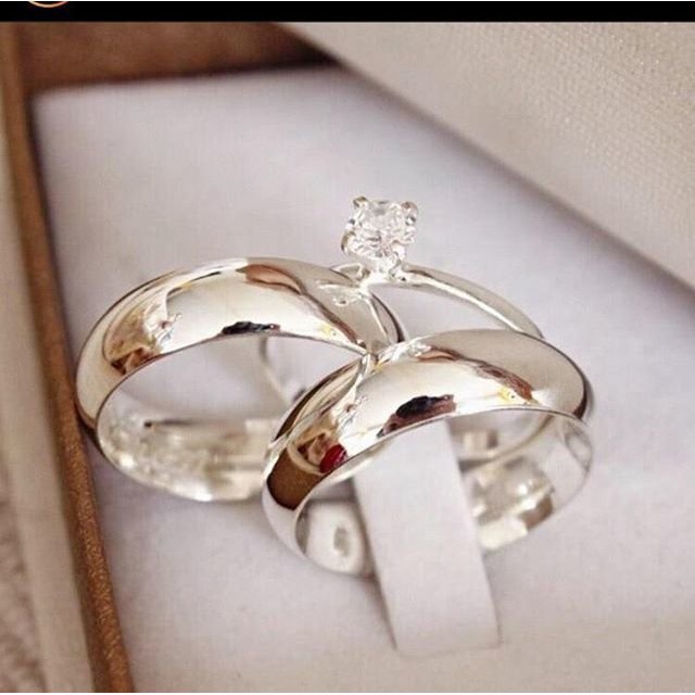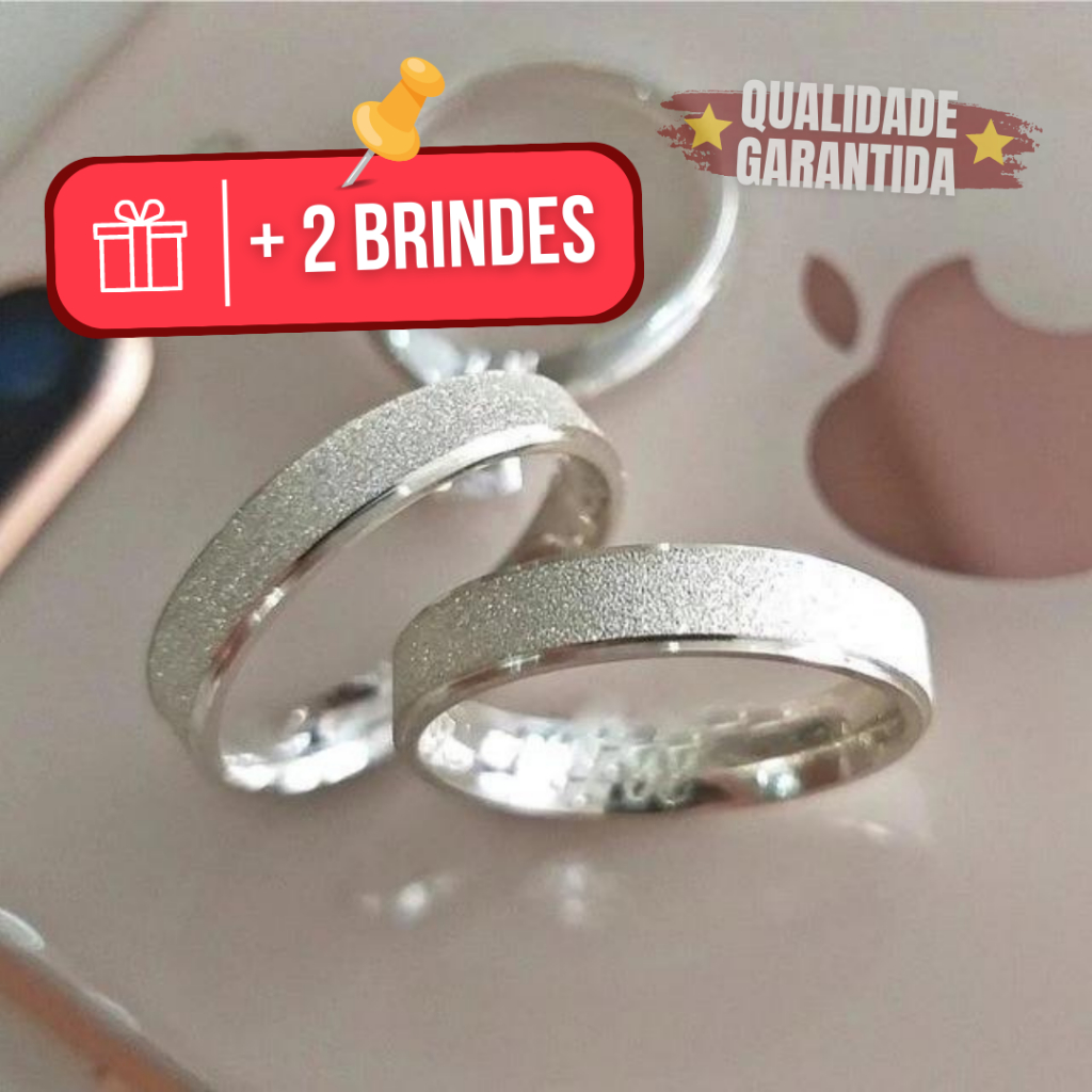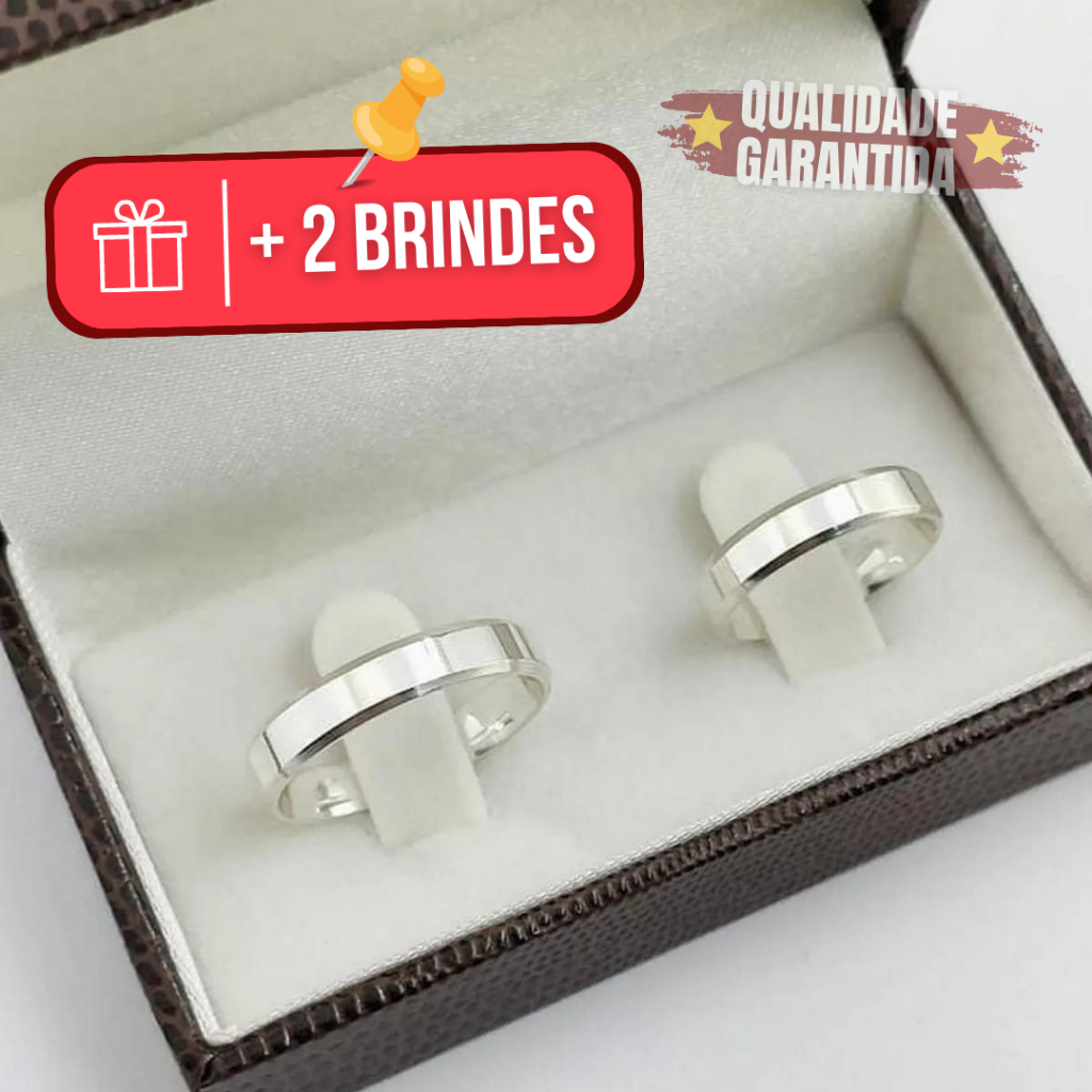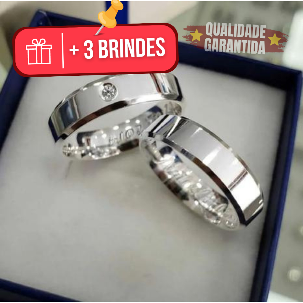 PROMOÇÃO Par de Aliança Namoro + Anel Solitário GRATÍS | Aliança com Pedra Brilhante e Aliança Lisa Quadrada Prata Namoro Casal