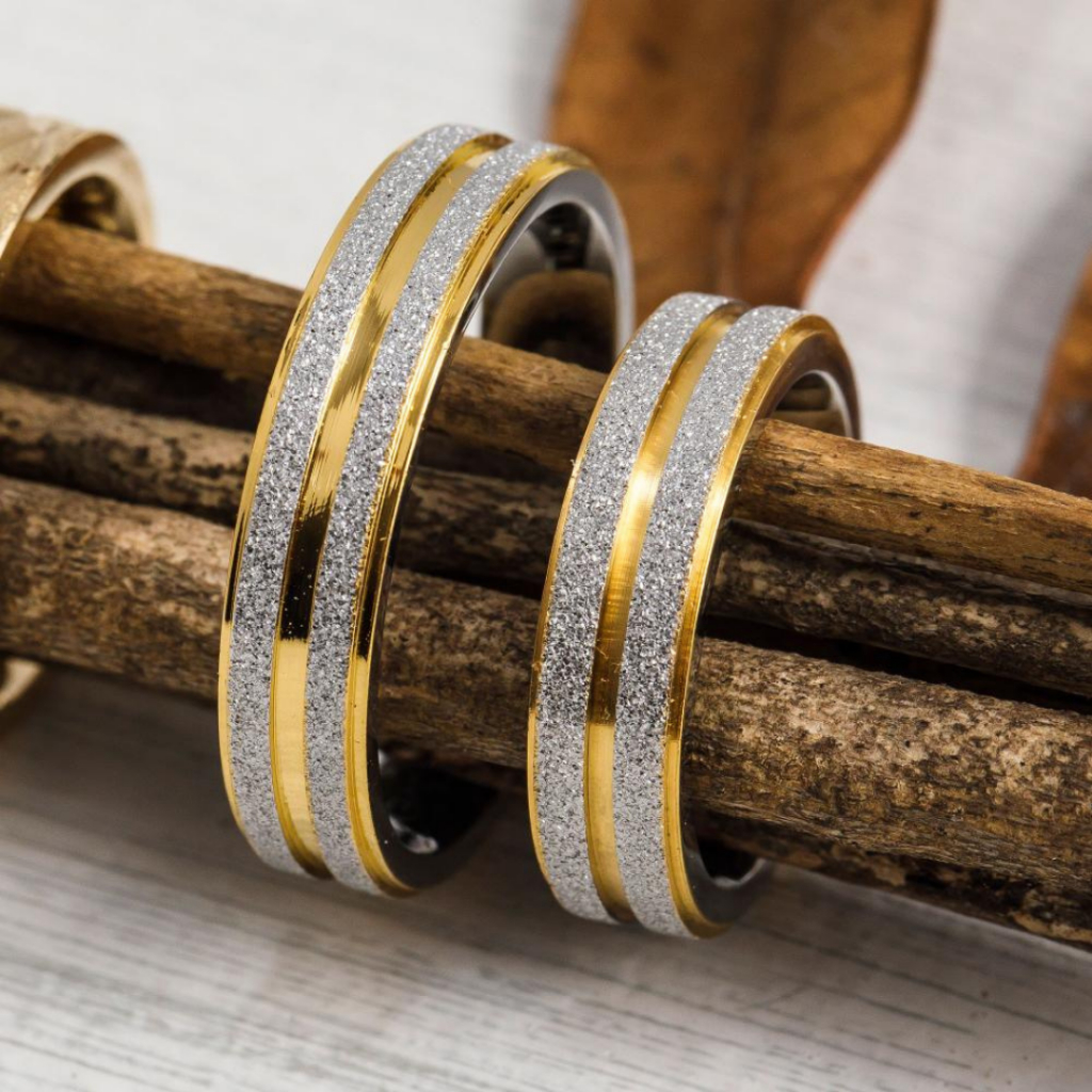 PROMOÇÃO Par de Aliança Casamento + Anel Solitário | Aliança 2mm Diamantada Filetada Prata Dourada Casamento Noivado