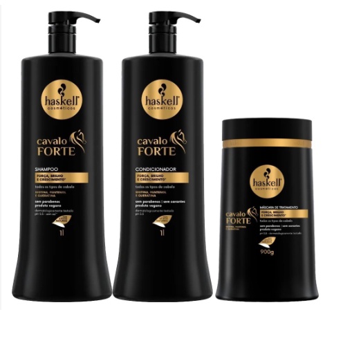 Cavalo Forte Haskell - Kit Shampoo, Condicionador 1L e Máscara 900g Hidratação e Fortalecimento
