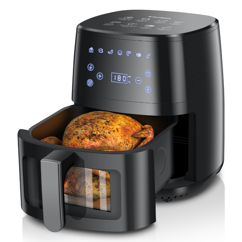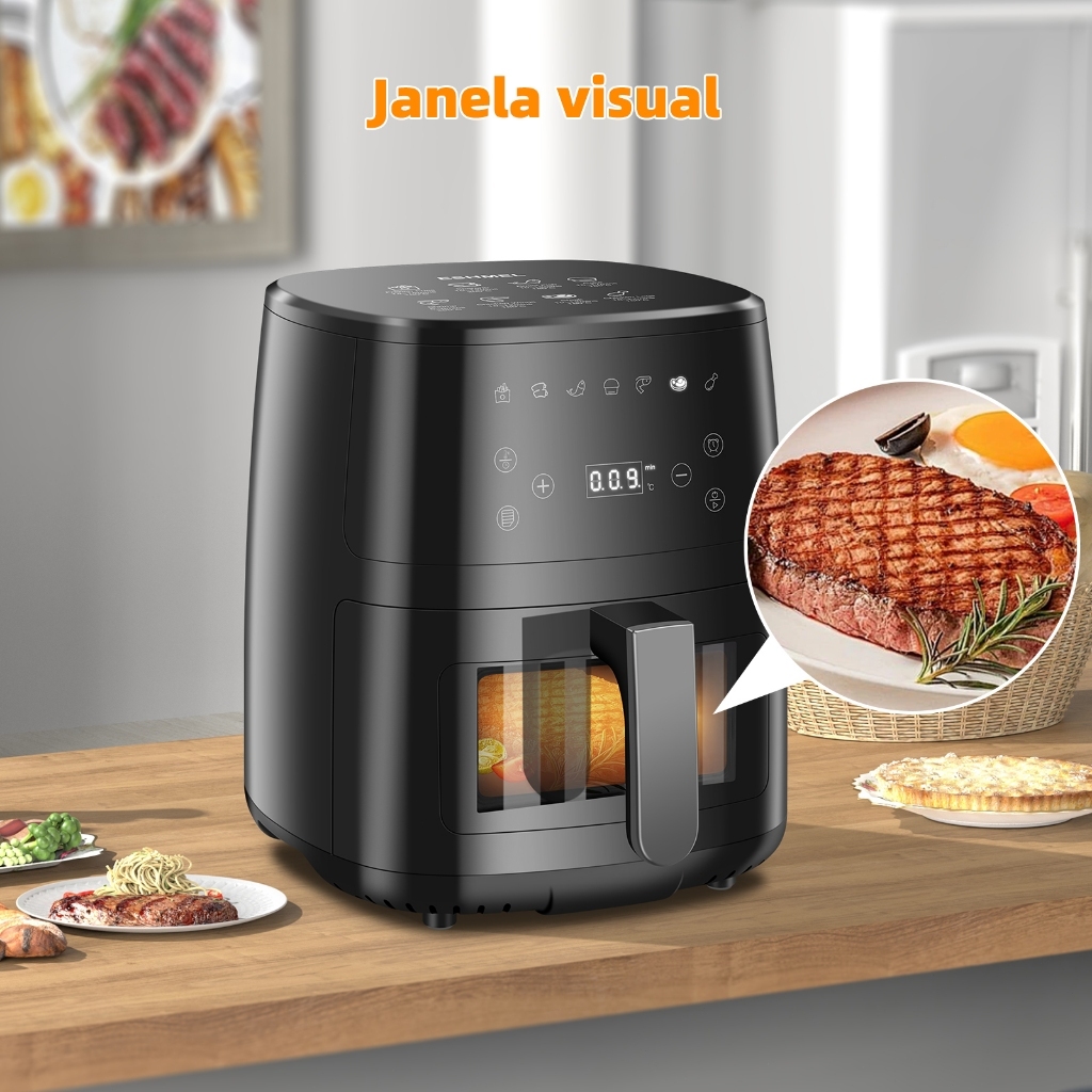 ESHMEL Fritadeira Elétrica Air Fryer 5L 127/220V Airfryer Botão Fritadeira Sem Óleo Ayr Fryer Digital Touch e Visor Transparente 1400W