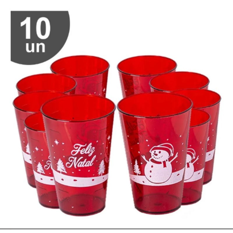 Kit 10 Copos de Natal Personalizado Acrílico Vermelho