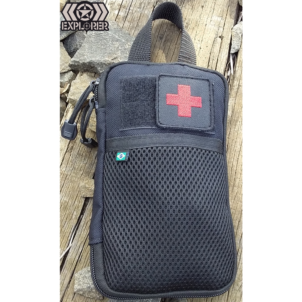 Bolsa Tática Bornal Necessaire Mochila Pequena Modular APH Kit Primeiros Socorros Airsoft Preto Porta Treco