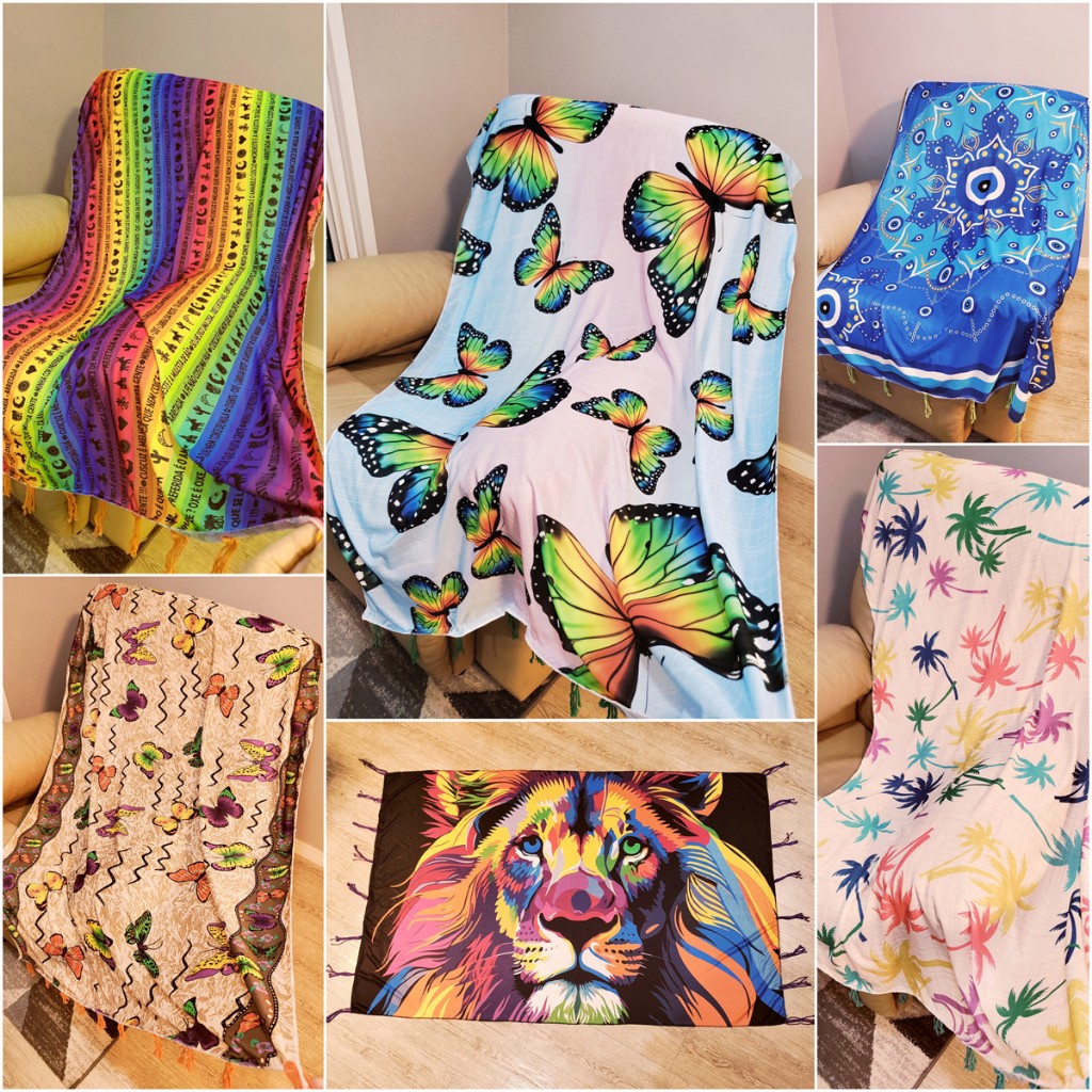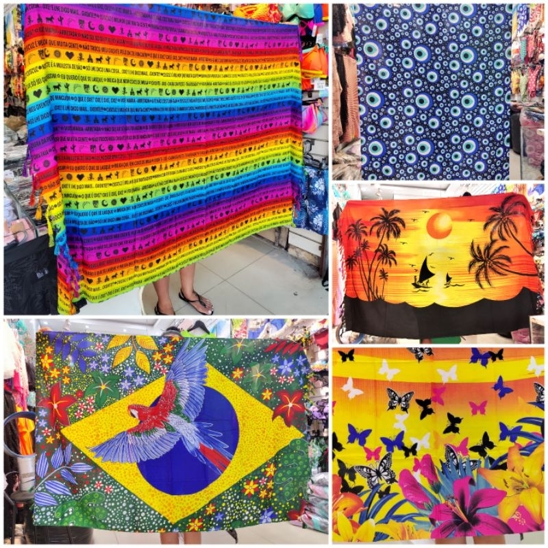 Canga De Praia Multicoloridas com variações de estampas escolher Poliéster Com Franjas 100x180cm