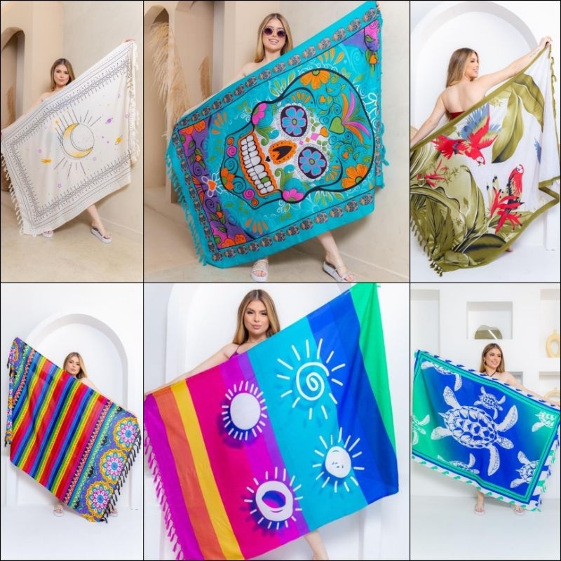 Canga de Praia estampado com franjas Multicoloridas com variações de estampas escolher