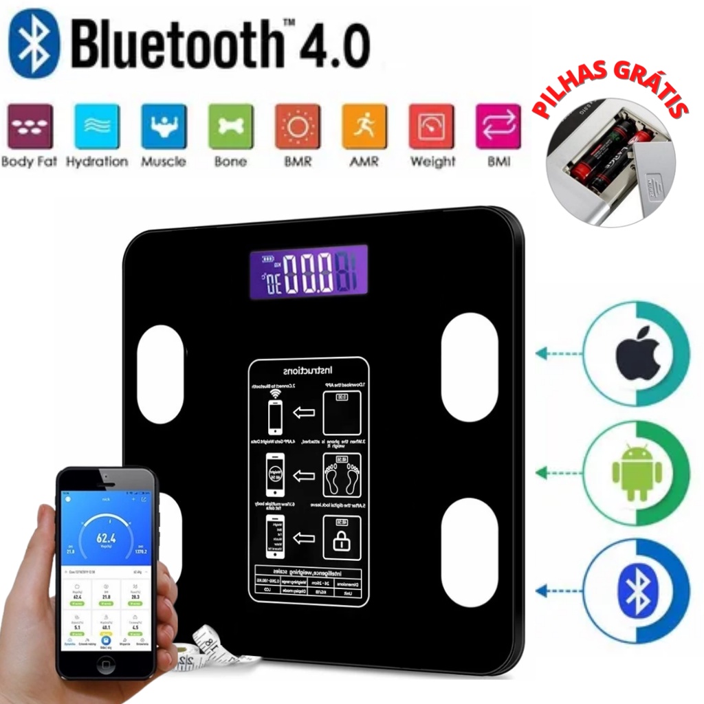 Balança de Bioimpedancia Corporal Digital com Bluetooth 180KG