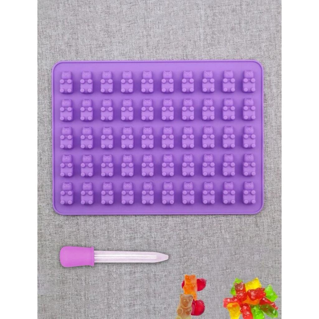 Kit forma de silicone pequena + conta-gotas / forminha gelatina, bala fini, chocolate, bombom, doce urso, dinossauro