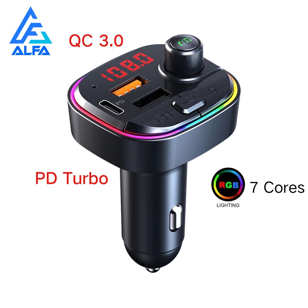 Carregador Carro Turbo Rápido QC 3.0 PD Com Led Transmissor Fm Bluetooth Veicular Mp3 Rádio Rgb