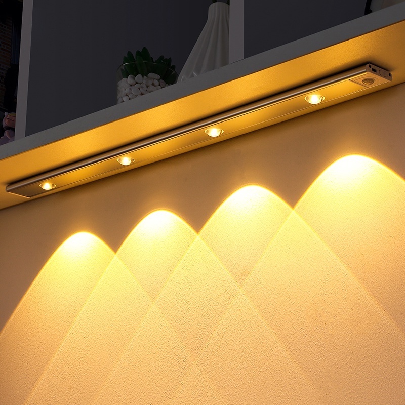 Luz LED Sob Gabinete USB Tipo C Sensor De Movimento Ultra-Fina Para Armário De Cozinha Iluminação Interior Do Roupeiro Quarto